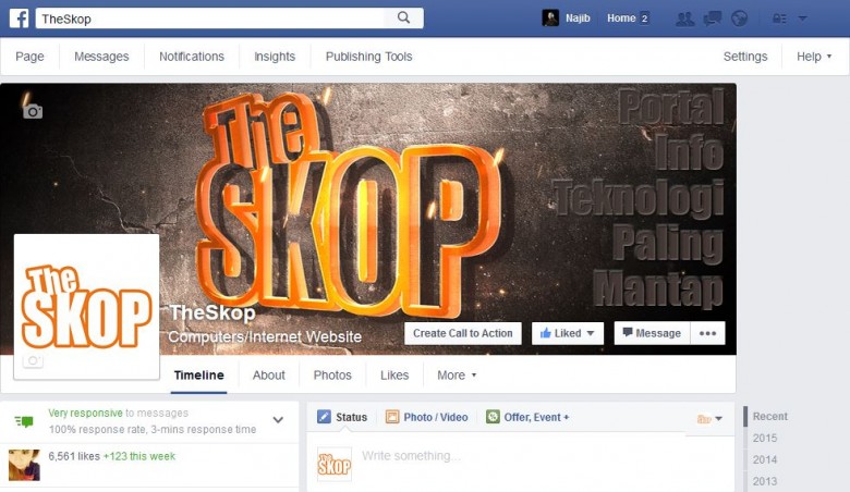 1. Di halaman Facebook, lihat ke tanda ‘V‘ yang terletak di sebelah ikon kunci, klik padanya dan ia akan memaparkan menu ke bawah.