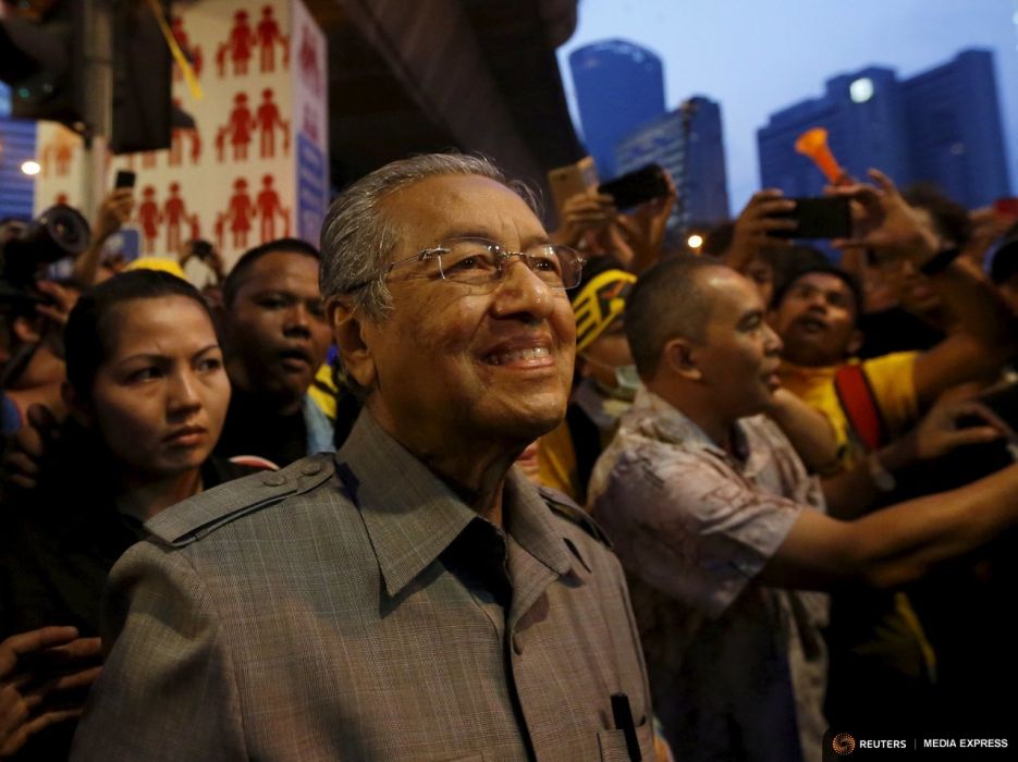 Former Malaysian leader Mahathir Mohamad, joining anti-government protesters for a second day on Sunday, called for a “people’s power” movement to topple Prime Minister Najib Razak over a financial scandal.