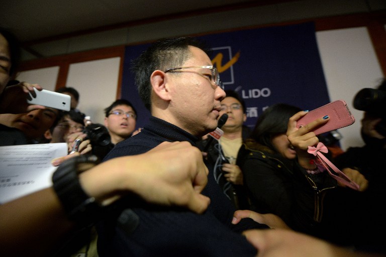 Liu Guohua, general manager of Malaysia Airlines in greater China, speaks at a press conference in Beijing on March 8, 2014. Photo: Whang Zhao / AFP