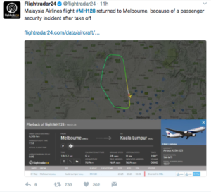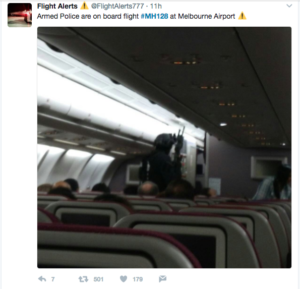 Late last night, Malaysia Airlines flight MH128 took off from Melbourne bound for Kuala Lumpur, however within 30 minutes a man with a history of mental illness tried to storm the cockpit, while shouting that he had a bomb.
