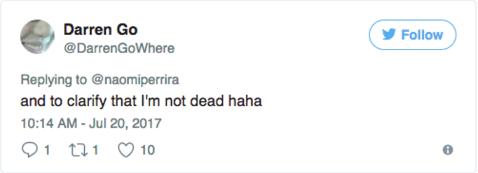 Goh says that “most of them just matched with me to ask me why I’m disrespecting myself, or just to laugh and provide more puns.”