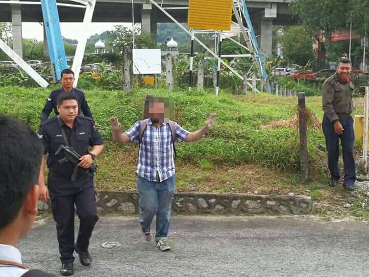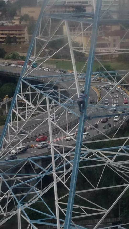 Passing motorists quickly alerted police, and it was only a matter of minutes before Kuala Lumpur Fire and Rescue arrived on the scene, along with two fire engines, as the witnesses believed that the man was attempting suicide.