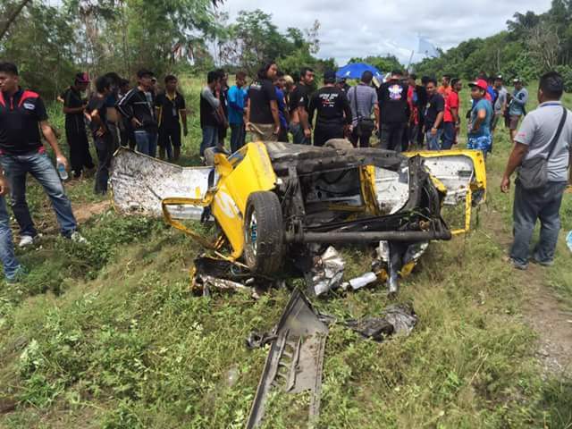 A man was killed when he was thrown out of his vehicle during a drag car race championship held at the site of the old Miri airport.