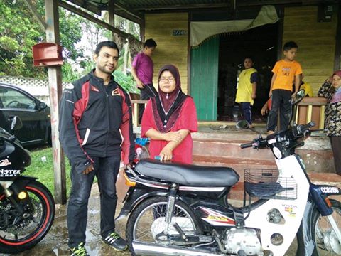 Along with a friend, Rafi embarked on his journey to Kampung Sungai Karang Darat where he presented RM2,100 and a second hand Honda EX5.