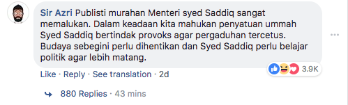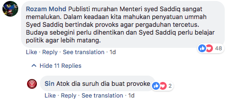 Prior to his arrest, Papagomo Sir Azmi Wan Muhammad had alleged in the comments section of Saddiq’s Facebook post that the minister provoked him, and that he was after cheap publicity.
