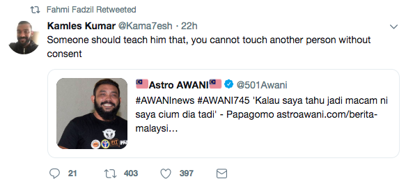 Wan Muhammad later included more video from the incident, claiming that he was merely “hugging” the minister.