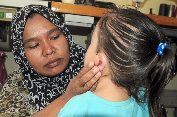 The mother, 35-year-old Tailor Nadia @ Nazziroh Hamzah, said her daughter complained that her ear was sore after coming home from school on Monday, prompting her to bring her daughter to the Sultanah Bahiyah Hospital for treatment.