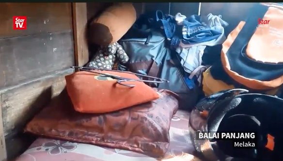 A news team that was on assignment in the Balai Panjang area when they by chance met the two, who were sleeping inside the stall’s tiny cupboard.