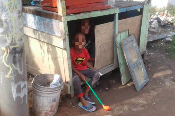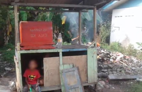 Melaka local council authorities were alerted this week of a mother and her seven-year-old son living inside an abandoned hawker stall.
