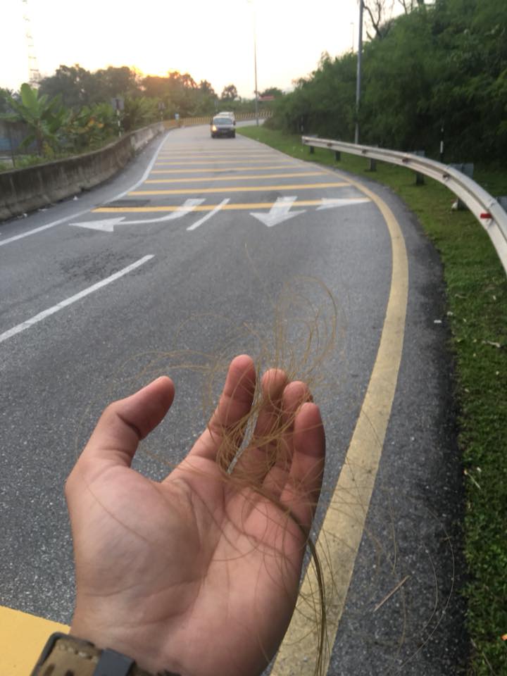 At the motorway exit to his housing park in Taman Rowther and Taman Koperasi Polis 1, the university student reported that a fishing line was strung across the motorcycle lane. Unable to see it, he writes that he was “nearly decapitated” by the taut and sturdy line at 6:30pm yesterday evening.