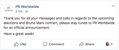 Concert organizers PR Worldwide have posted to their Facebook group, asking ticket holders to be patient and to await an official announcements regarding the future of the show.