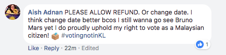 While some ticket holders were left hoping that the show would go on, many expressed their wishes for the dates to be re-scheduled, so that they could vote.
