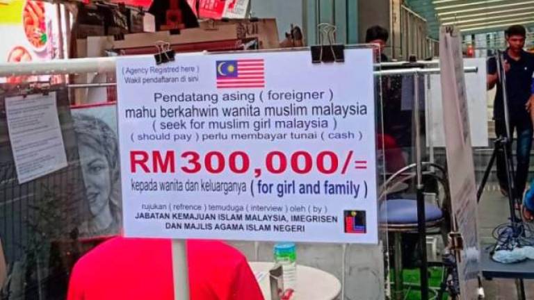After news broke that a man advertising to facilitate legal marriage services between foreign men and local, Muslim women to the tune of a RM300,000 (US$72,500) “dowry” would have no further legal action taken against him, more than a few eyebrows were left raised.