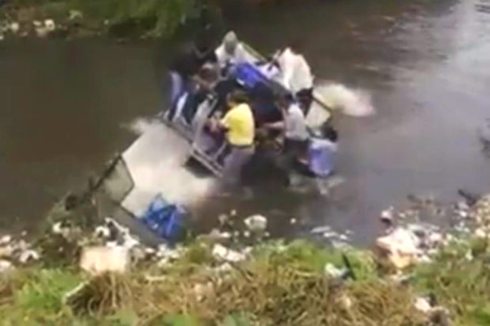 Due to the excessive weight — the weeding machine was designed to only carry two people — the machine turned turtle, throwing its ‘passengers’ into the creek.