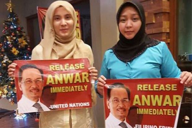 The most prominent photo of the two show Nurul Izzah and Jacel Kiram, daughter of ‘Sultan’ Jamalul Kiram III, holding up banners saying “Release Anwar Immediately”, referring to Nurul Izzah’s father, jailed former Parliamentary Opposition Leader Anwar Ibrahim.