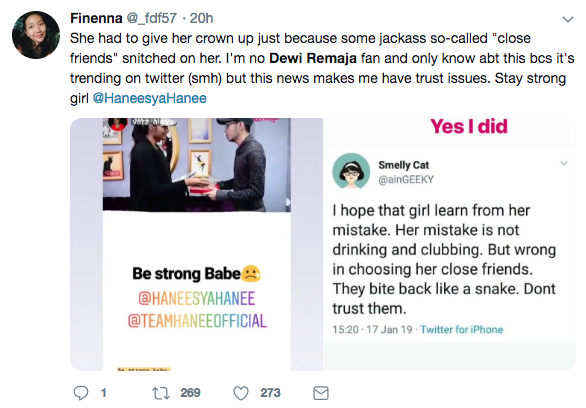 Many who saw the forest from the trees in this brouhaha pointed out the obvious: Haneesya’s crime wasn’t so much drinking, it was aligning herself with the kind of friends that would share the images, knowing very well how pageant owners, and the wider rakyat, would react.