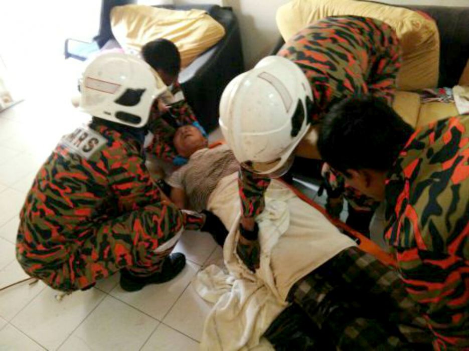 An elderly man, who is paralysed, was finally rescued from his flat unit in Nilai after being trapped for three days.