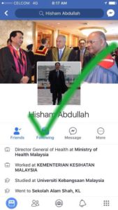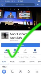 He wanted to make clear that the user Abdullah Hisham Noor is not his account, and that his personal Facebook could be found at Hisham Abdullah, and his public profile at Noor Hisham Abdullah. The fake account no longer appears to be active on the social media site.