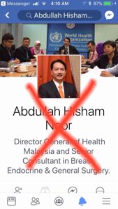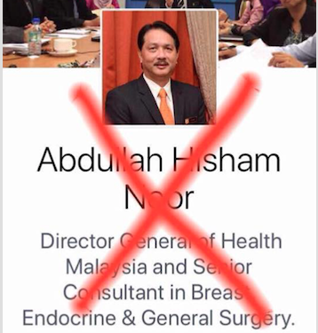 The director-general of the Ministry of Health, Dr Noor Hisham Abdullah has been forced to make a statement today regarding a social media account that is claiming to be his, and asking for donations from Facebook users.