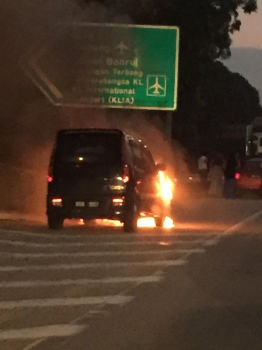 The Star Online reports that the backed up traffic was due to a Perodua Kenari which burst into flames on KM35.9 of the highway, causing slow traffic from Kewajipan to Kota Kemuning.