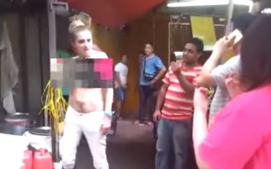 Shocking everyone present (and delighting anyone who clicked on the YouTube link), she proceeded to escalate the argument by peeling off her jacket, tank top, and bra, daring the stall owner to go toe to toe with her sassy (drug-addled)topless self.