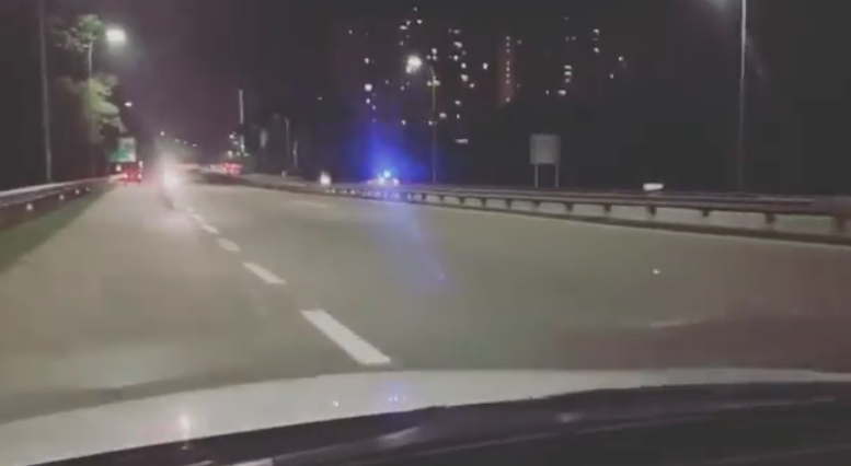 In the 34-second clip, a police mobile patrol vehicle can be seen speeding in the shoulder lane near Plaza Tol Perling, with its siren and beacon lights turned on in the early hours of Sunday morning.