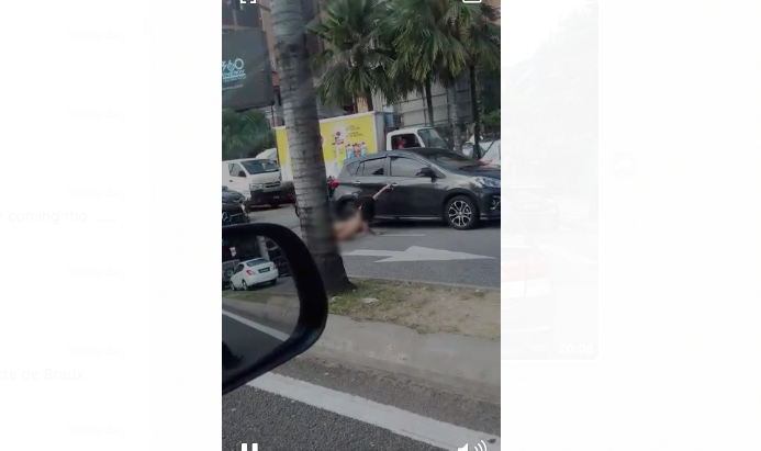 In several videos taken at the scene, the unnamed individual, purported to be a Filipino national, is seen first exiting a taxi wearing underpants, but topless. She is later captured dancing through the busy intersection, hopping along the divider, throwing herself to the ground while gyrating, and even jumping, and walking across several moving vehicles.