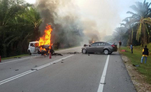 On Saturday, a Proton Persona — driven by a 33-year-old woman — skidded towards the opposite lane and crashed into a Perodua MyVi around7.45am in Kampung Padang Kubu.