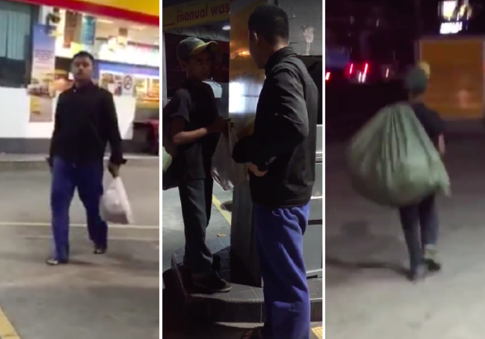 After leaving his car at the pump, Mohd Shafiq said he saw the boy standing behind his car, picking out drink containers and cans from a garbage bin before placing them in a sack he was carrying.