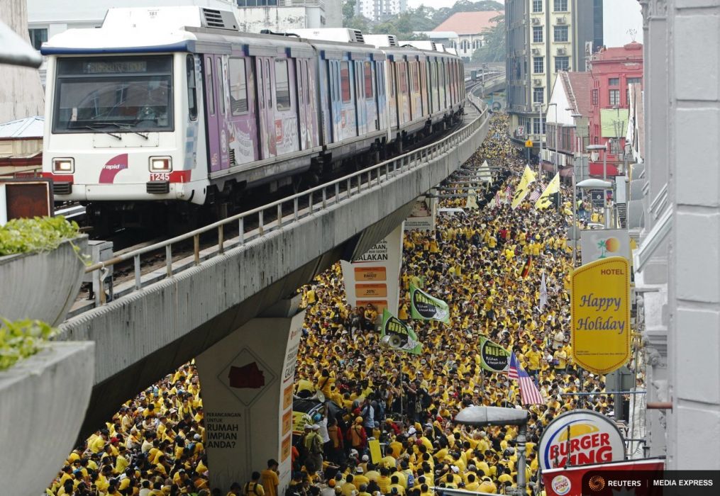 The government blocked access to Bersih’s website and banned the wearing of its signature yellow T-shirts, although the crowd of protesters was a sea of yellow.