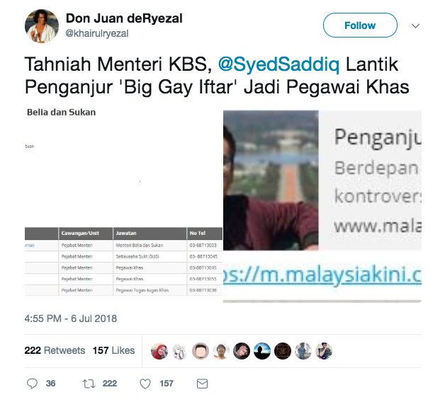 You’ll always be a bro. https://t.co/68nhiuaMqY— Syed Saddiq (@SyedSaddiq) July 9, 2018