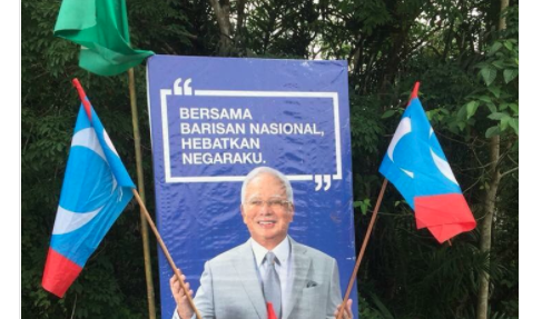 Social media user @HasrulRizwan used a photo of a Barisan Nasional campaign poster for the upcoming election that had been decorated with opposition party flags, and commented that someone should get a prize for “best flag placing.”
