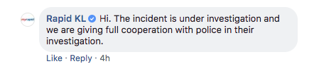 RapidKL has commented via their social media account confirming the incident, and the they were still investigating the case. New Strait Times is reporting that the firm are asking victims to contact their helpline so that they can receive compensation for damage.