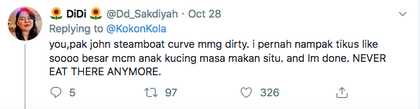 Meet user Izhar Che Jamil, a man who alleges to have eaten at a certain hot pot serving establishment at The Curve, a popular Kuala Lumpur-area shopping center. We won’t name it for legal reasons (y’all, unhygienic conditions and litigiousness are not mutually exclusive), but you can peep the name and evidence for yourself in his Tweet: