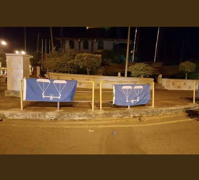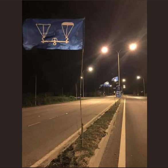 Instead of the double-pan balance on a blue background, it seems that those putting the flags up thought that they were …