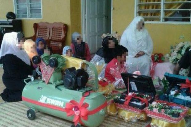 Malay weddings almost always involve the exchanging of gifts between the bride and groom, and nine (point nine) times out of ten you’ll see hantaran trays of confectionery, perfume, a nice shirt and tie combo, a wristwatch, a phone … and then there’s this wedding.