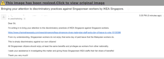 Eighty or so Malaysian employees working across the Causeway at IKEA Singapore have been granted an extra day of paid leave, Wednesday, May 9, so that they can exercise their democratic rights and vote in the country’s 14th General Election.