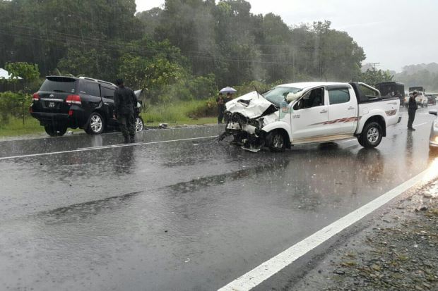 Beaufort district police chief Deputy Supt Azmir Abdul Razak said Sapawi, who was riding shotgun, was warded at the Beaufort Hospital for chest pains while his driver Abdul Madi Awangku, suffered serious leg injuries. The driver of the other vehicle, a Toyota Hilux, also suffered serious leg injuries.