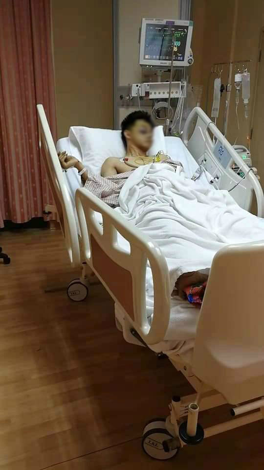 Stating that the injured man’s name is Yap Chee Loong, the unnamed user writing to the group also attached a video showing the victim and three others chatting in what appears to be an outdoor parking lot. Suddenly a motorbike appears on screen, zips past the group, and knocks Yap to the floor.