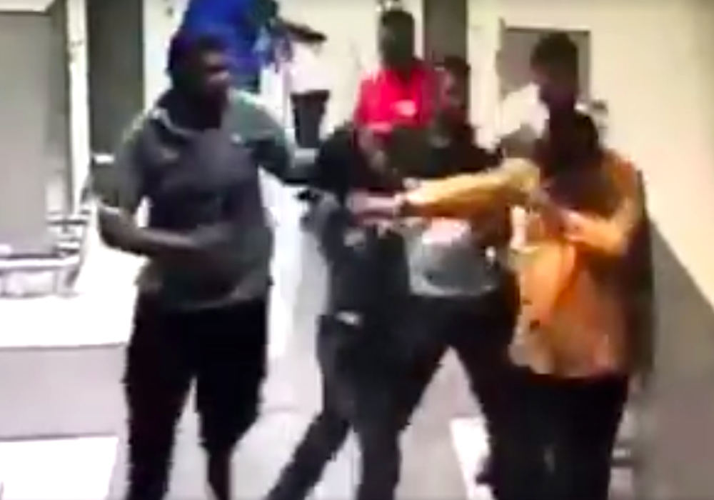 In the 48-second video, Ibrahim, who was wearing an orange shirt, was seen being chased down a corridor by no less than five people.