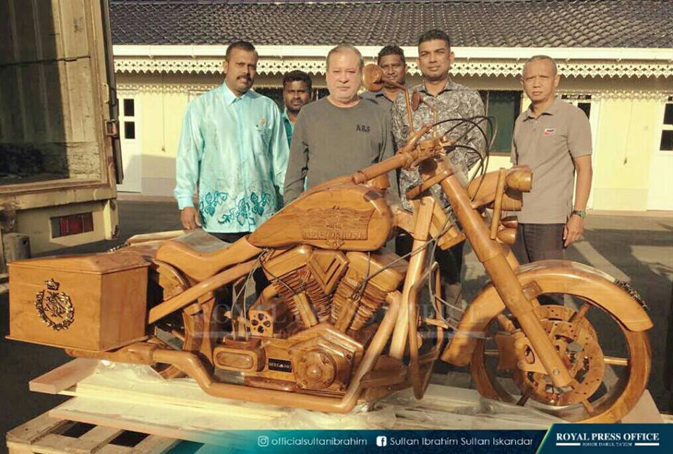 The solid, timber-wood bike idea was one that Deva had been dreaming about for several years, as Sultan Ibrahim is a renown Harley lover, and collector. He contacted a friend with 17 years of wood-working experience, and the two were able to make the wild idea come to fruition. We’ve gotta admit. It’s pretty spectacular looking and incredibly detailed. Well done, guys.