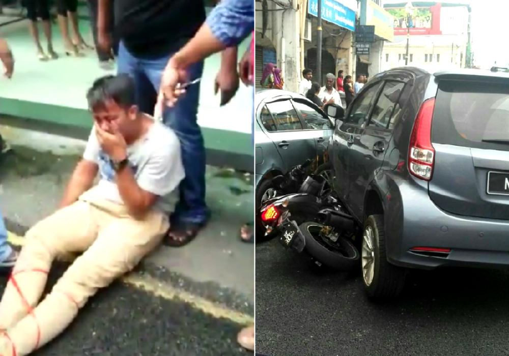 Seremban district police chief Assistant Commissioner Thiew Hock Poh told the daily that as they were trying to speed away, they crashed their motorcycle into a parked car.