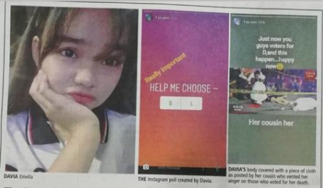 Reports yesterday from Kuching, Sarawak, confirmed that a 16-year-old girl committed suicide shortly after sending her Instagram followers a story in which she asked them if she should end her life.