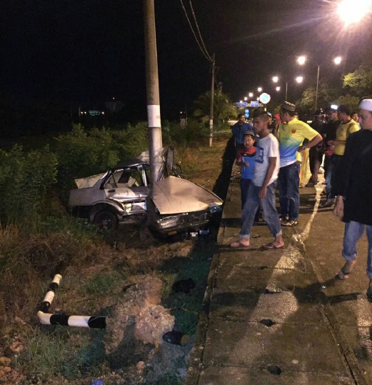 The Star Online reported that the car driven by student Muhammad Syahir Hakimi Mat Zali — who did not have a licence — had skidded and rammed into a lamppost in Titi Gajah.