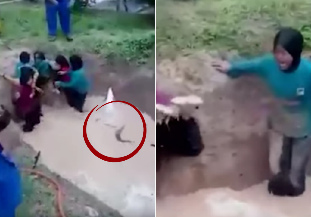 A video showing a group of schoolchildren being forced into a pit with snakes has been making its rounds on social media.