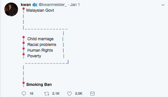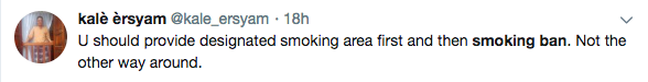 However, some are crying foul over the fresh legislation, saying that not only are “smoker’s rights” [Editor’s Notes: Not a thing, but OK] affected by the ban, but that the government should have first established designated smoking spots before going cold turkey, and also adding that Malaysia’s tourism industry will suffer.