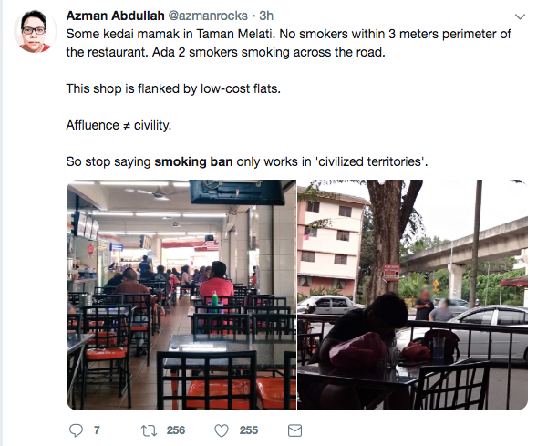 Yet a perusal of Twitterjaya (hmm… Twitterville?) indicated that many of the country’s young welcome the ban, highlighting that the lungs of non-smokers take precedent over choices others make to light up.