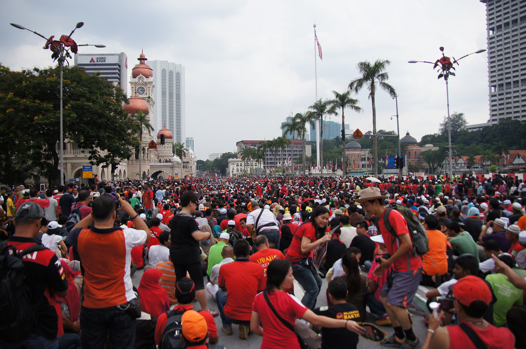 Estimates of the crowd in attendance varies – although the PDRM initially expected around 15,000 to turn up at Dataran Merdeka at the appointed 2pm starting time, between 40,000 to 50,000 – mostly dressed in red – could be seen participating in the rally.