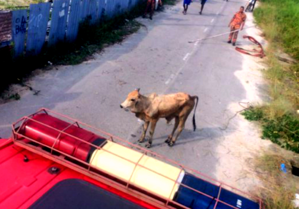“This is when it rammed into the fire engine and cracked its left headlight,” Mohd Hissam was quoted as saying, adding that the cow’s owner eventually brought the animal under control.
