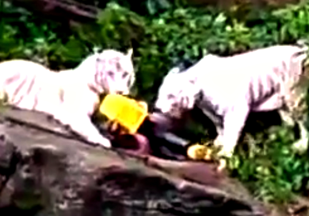 A video showing two white tigers mauling a zookeeper was widely circulated on social media, causing quite a bit of confusion among Netizens.